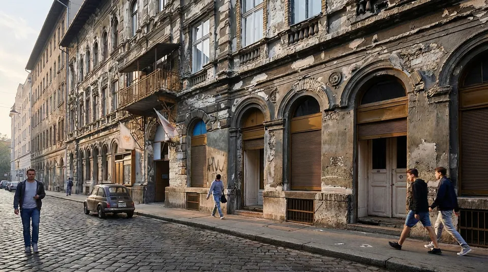 Don't let the crumbling facade on Akácfa utca fool you. While it looks like anot...