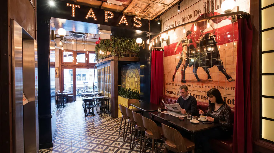 Don't come to Vicky Barcelona for goulash. Tucked into the loud, chaotic center of Gozsdu Udvar, this place swaps Hungarian grit for Mediterranean heat. It feels like a movie set. You'll find crimson curtains, heavy shadows, and walls covered in mosaic tiles that make the Jewish Quarter feel miles away. It's the kind of spot where a quiet dinner for two inevitably turns into a long night of drinking. While the name Vicky Barcelona might remind you of a certain Vicky Barcelona film, the energy here is less Woody Allen and more pure Spanish fiesta. The air smells of charred octopus and citrus. It's loud, it's unapologetic, and it's exactly where you want to be when the sun goes down in District 7.