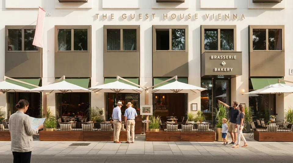 La Brasserie & Bakery au rez-de-chaussée est le cœur battant de l'établissement. Ce n'est pas réservé qu'aux clients de l'hôtel. Les habitants de la ville viennent y manger, ce qui est le gage de qualité ultime à Vienna. Ils viennent pour le pain cuit au feu de bois et le café. Oubliez le triste buffet d'hôtel. Ici, le petit-déjeuner est à la carte et servi toute la journée. Si vous voulez des œufs pochés et une coupe de Sekt à 14h, personne ne sourcillera. L'ambiance est animée et cosmopolite. On a l'impression qu'un morceau de Londres ou de Paris a été déposé au milieu de Vienna. Le soir, les lumières tamisées transforment l'espace en un lieu feutré pour un steak ou un verre de vin avant l'opéra. C'est vivant, vibrant, exactement là où l'on veut être.